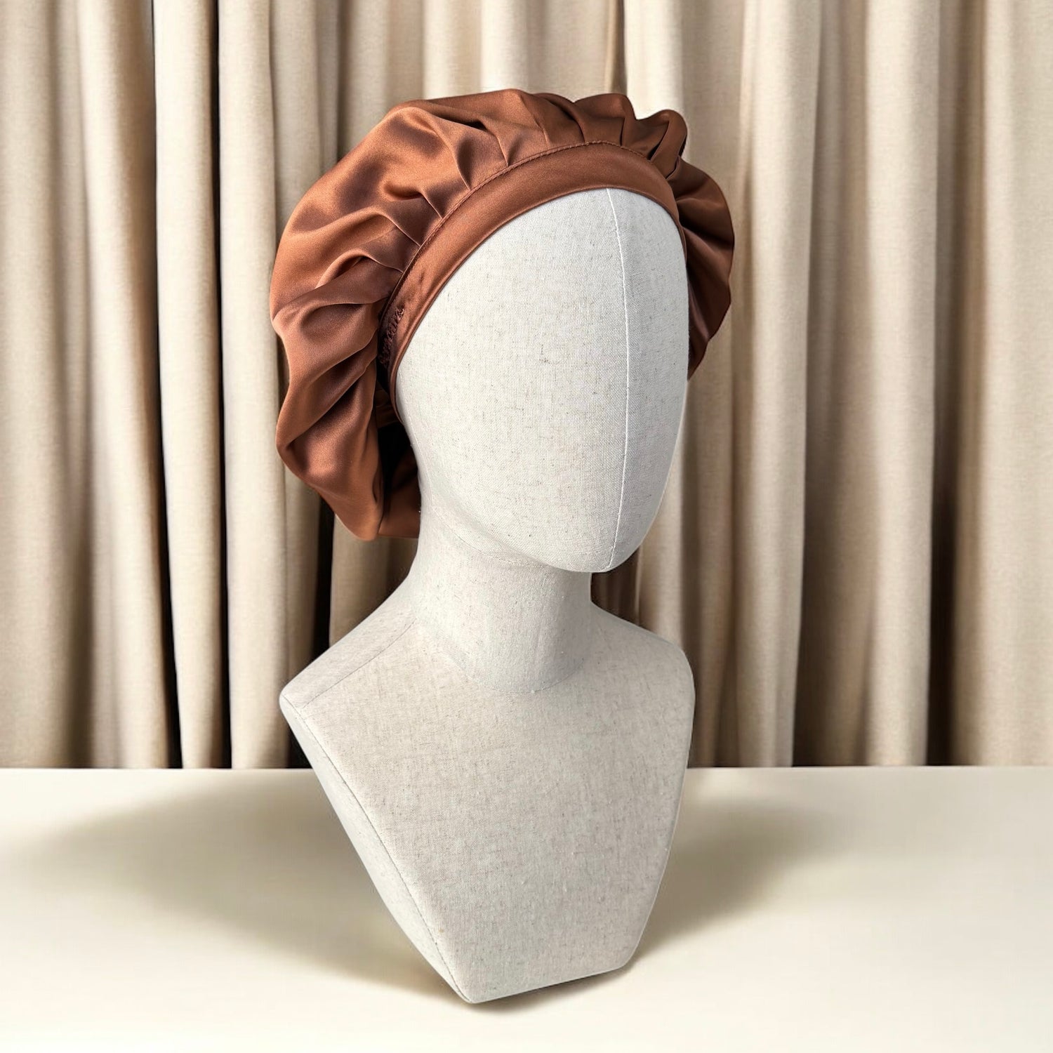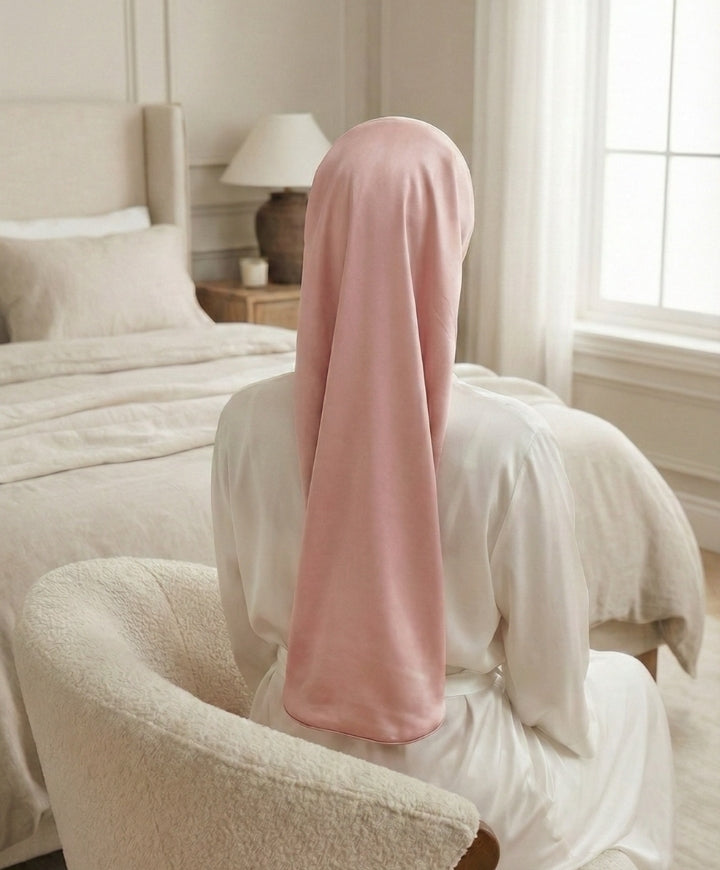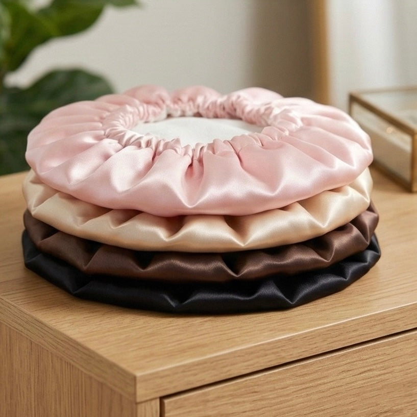 Découvrez nos bonnets de nuit en soie, conçus pour offrir un maintien confortable et aider à limiter les frottements pendant le sommeil. Leur douceur naturelle accompagne vos nuits en enveloppant vos cheveux délicatement.