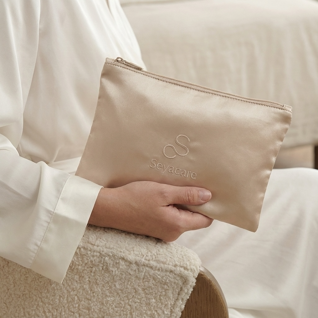 Découvrez notre Trousse Signature en soie, pensée pour protéger vos essentiels avec douceur. Son format plat et sa texture soyeuse en font un accessoire élégant et pratique au quotidien.