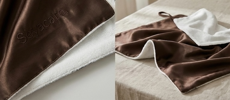 Une sensation légère et agréable à l’utilisation : la face soie offre un contact doux et lisse sur la peau, tandis que la face microfibre, fine et absorbante, permet de sécher le visage sans frottement ni lourdeur. Son format souple et facile à manipuler rend l’expérience confortable au quotidien.